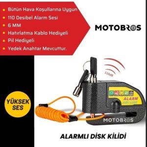 MOTOBROS SİYAH Motosiklet alarmlı çelik disk kilidi yüksek sesli ve hatırlatma kablolu
